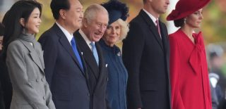 Kate Middleton, valižanska princesa, je osupnila v škrlatno rdečem plašču Catherine Walker z značilnio palerino, ko je skupaj s princem Williamom pozdravila južnokorejskega predsednika in njegovo ženo v Združenem kraljestvu na paradi konjske garde. Nam se zdi prelepa!